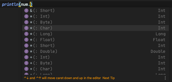 val num2 = 1.+(2) // 실제로는 이렇게 메소드 호출로 동작한다.